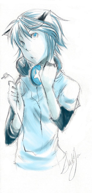 yeah i do need to finish it but I'm scared of large areas (to color) like his shirt.. and pants... and the SHIRT.. cause I mess up when it comes to coloring large areas DX *dies*