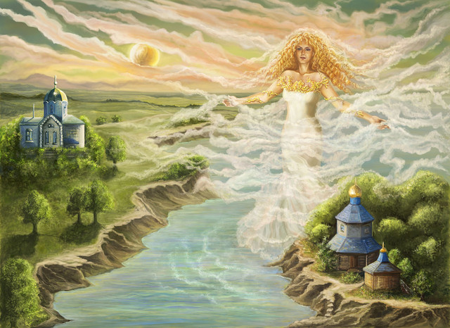 This is lovely; I especially love the flying white robe! That's an amazing amount of detail in the landscape.