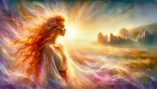 The scenery and her dress are simply stunning. Almost epic. Her face seems a bit stuck on somehow, but other than that just amazing. I can almost feel the pressure in the air from those clouds poised to roll down the valley and feel that crisp breeze swirling in the morning mist...