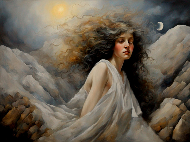 Really beautiful and inspiring. The flow of the cloth and the roll of the mountain work so amazingly together. I love the detail you put into this.
