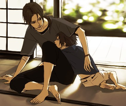Still, this is an adorable piece. The colors are awesome, and I love the mood. (and the fan by itachi's head, for some reason. X3)