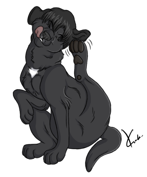 Awww! ;u; I love this new position, It's difficult to draw your characters in different positions, but I can see the action of him scratching his ear....... Or maybe he's making a phone call through his foot!Β