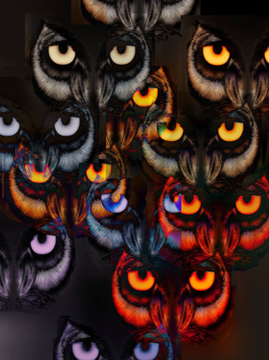 Great Horned Owl head at different angles. These are all the same bird except for two in the middle: the angry, puffed up owl 3 across and 5 down, and the picture of the chick right beneath him. The main model is a permanent resident at a raptor rehabilitation center. His ear tufts are down in the majority of these images because they typically only go up when he is alarmed or upset. This guy is a patient, tolerant bird on the glove (he is frequently used to train inexperienced volunteers how to jess and handle a raptor for the first time), but there is one thing that never fails to immediately perk those ear tufts up: children. The other five Great-Horned Owls who live together at the center also appear to hate children (even well-behaved, quiet groups of children) and it is somewhat amusing to see all ear tufts raise simultaneously when a school tour group arrives.Feel free to download for personal use. Not for photo-manipulation.