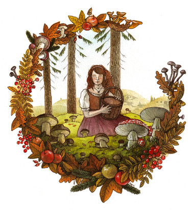 #apple #autumn #black #cat #garden #green #ink #summer #trees #watercolour