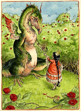 I really like this piece, but it has taken me a while to decide what I want to say about it. artistically, I love your color balance and the contrast between the pale whites and the bright reds. Balanced, and not overwhelming, but a very well exectued contrast. Your technical skills are great, and are reminiscent of the traditional fairytale drawings. Moreover, I like the "story" that can be infered from this. The prince looks efeminate, and makes me wonder if he is a princess in disguise, with her hair tucked into the back of her collar, starting out on a forbidden adventure, which is getting off to a romantic and whimsical start. Truy a strong piece.