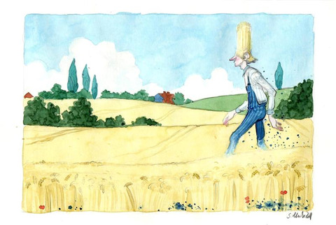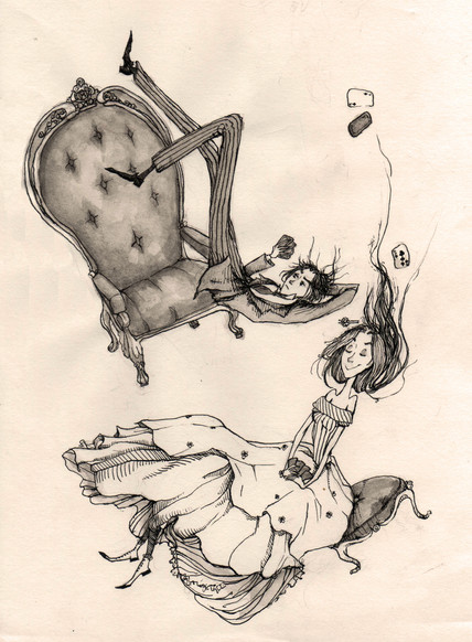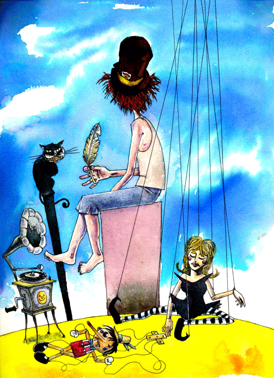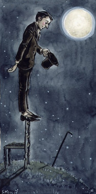 #brid #clown #ladder #letter #man #mysterious #pantomime #parasol #stripes #watercolour #whimsical