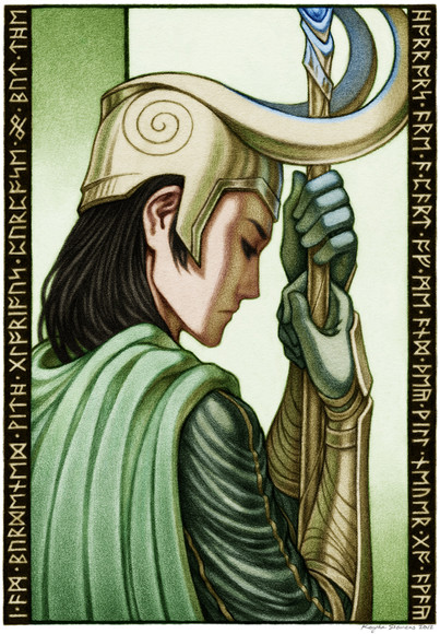 um hold up looking at this makes my recent loki drawing look like shit asl;dghsODIGhksdgh. ugh this is beautiful, dear!!! *clings onto it for dear life* those three weeks were definitely worth it omfgggg.;A; i really really love the contrast between asgardian!loki and frost giant!loki on the left and right sides. and of couuuuurse i adore the centerpiece (loki in uniform for the freaking win) and the background.