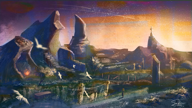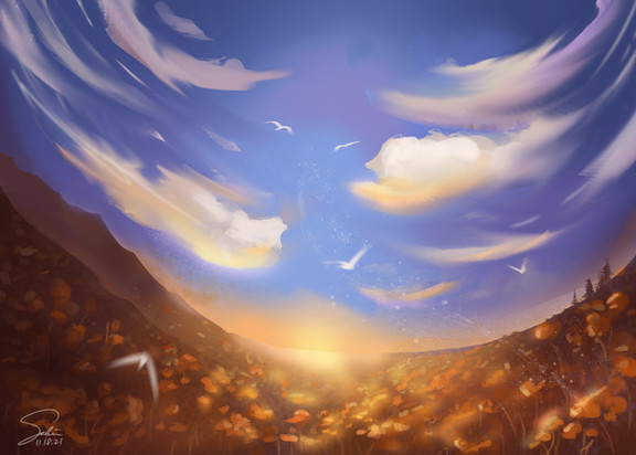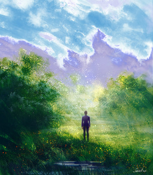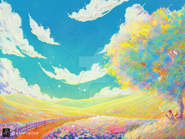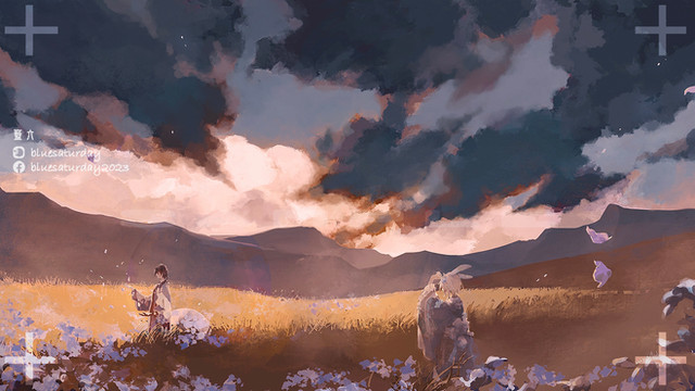 #angel #background #clouds #conceptart #digitalart #environment #fantasyart #flowerfield #flowers #forgetmenot #nature #pasture #wallpaper #digitalpainting