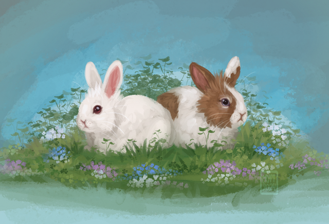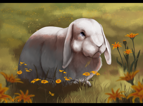 #animal #bunny #cute #flowerfield #flowers #hollandlop #kawaii #nature #pasture #pet #petportrait #portrait #rabbit #wildlife #artcommission #digitalart #digitalpainting
