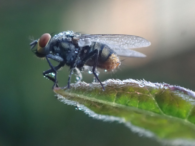 Amazing capture. The dewdrops on it's wings and all it's hairs are so detailed and focused.