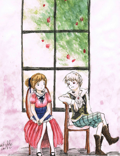 Bref, j'aime beaucoup le dessin. Fait sans modèle (Y'a sûrement des problèmes quelque part d'ailleurs, j'pense o;o ) et même si le coloriage fait un peu caca, je l'aime pour une fois <3
