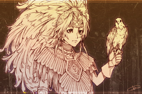 lovely work as usual i love the flat colors and rustic feeling. the linework and the intricateness of the patterns in the background are amazing. I would also like to know how long it took you to do all that ^____^ If you don't mind me saying, I think the right corner looks a little cluttered from far away. Other than that, it's fabulous. geez i don't know why im using words like lovely and fabulous today =X