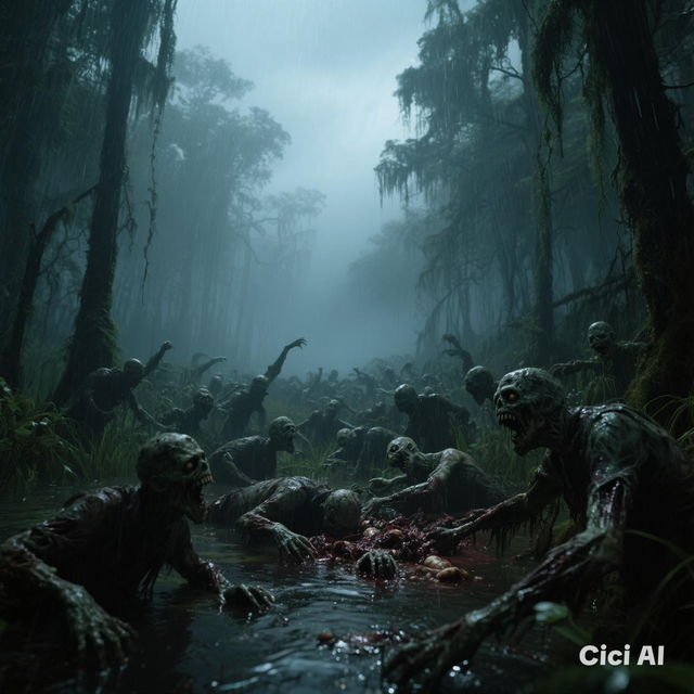 #videogamefanart #fantasyart #horror #forest #zombie #digitalart #deviantart #apocalyptic #fanart #portrait #surreal #creepy #photography #ai #aiart #riseofthedead #aicommunity