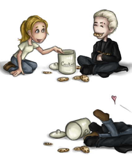 I swear, by the angel, this is what popped into my head when I watched the new MTV exclusive on Jace. I just had to draw it. Jemima and Kevin sure have their hands full.Silly Jaime. Cookies are for mundanes. XD