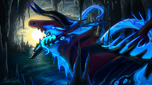 In this image Quartz becomes more and more corrupted as the ghost known as Aurora is possessing him to use his animus powers. He's cursed. Quartz shut himself in this cave cell to protect his people as he fights Aurora for control, but Aurora found a loophole and she enchanted a puppet called Fall that walks around on the outside. Fall may be only able to cast spells in close enough proximity to the prison, but it can still be used to located existing animus objects too. Aurora’s goal is to escape her deteriorating prison and take control of the outside world. Quartz is the only thing that stands in her way.In my au/general lore, if you’re losing yourself while trying to use magic, you can become corrupted and turn into a tentacled, three-eyed monster called a Pha. Though the corruption of the mind is reverseable at any stage (even after fully becoming a Pha), the scars of corruption are permanent. Quartz is only half corrupted so far. Outside of the au, this curse is self-inflicted to stop Aurora. Will Aurora escape before they're both lost in madness?