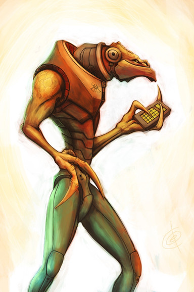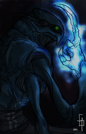 I'm not sure what this guy is, but the drawing came out of pure expressionism. I had things like the Dark Crystal and Secret of Nimh in mind, but with a sci fi flare.Related content