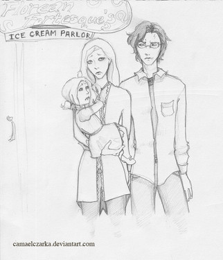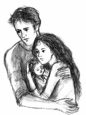 **Spoiler**Breaking Dawn- edward, bella, and renesmee waiting for the volturi. yup. crappy shading. and its kinda sideways. grr D:<