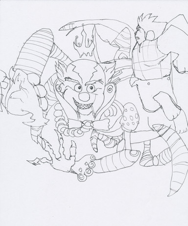 For the pirates challenge in the however many drawings challenge thing.I like how it turned out. I'll clean it up eventually and I will color it too.