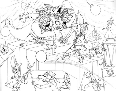 Finished and added on the second part of the robot/andriod battle between Tenacity and Affinity.Now I shall color this thing!