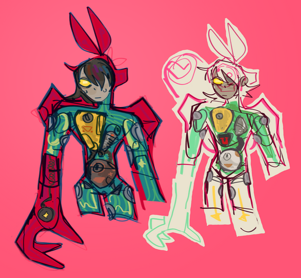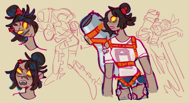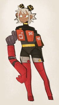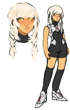 The pain in the ass of uploading OC content is that details change a bit between when i drew this and now. First up is Delta, a mech pilot. She was lab grown to do it and is kind of a shithead. Doesn't exactly "care" about her job but she likes fighting and violence so she'll go along with it anyways