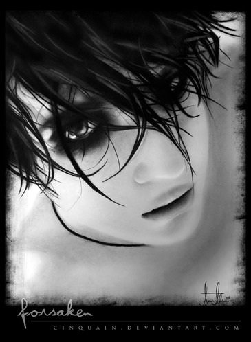 Tralala. Okay, uh... Marilyn Manson. I'm not a huge fan, though I have my moments. Either way, I saw this out-of-focus choppy picture of him and absolutely had to put it to paper. I'd say it was a success. This was by far one of my most experimental pieces to date. I took a few artistic liberties by adding the " marks, the handprints (which are mine, yes, and done in white chalk), and the little saying at the bottom that I simply pulled out of my head. It might be a tad hard to read (purposefully) but for those who are curious it says "And tomorrow I shall save myself."I didn't do it on purpose, but the handprints really show just how big the piece is. For some reason I'm diggin' that.