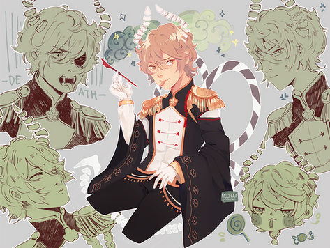 ♡ Physical Alterations: His right horn is broken and his tail ends with a plug