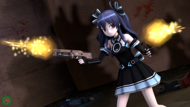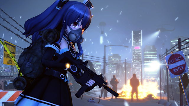 So I made another poster with Uni. Exact same pose as the other render but this time, she's walking in front of destruction. You decide whether she caused it or not.