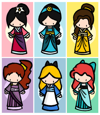 Aww this is adorable!! I love how you drew the less common princesses that don't get much credit! Esmeralda is my fave from this All their background colours fit so well!