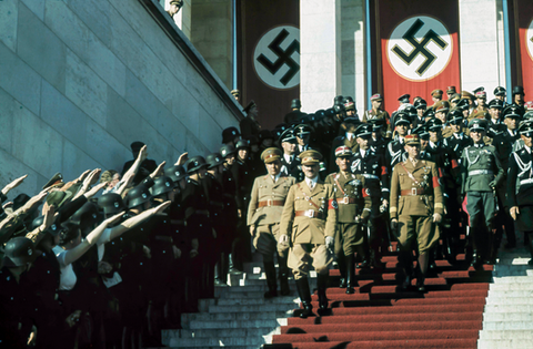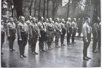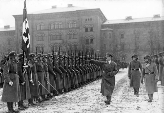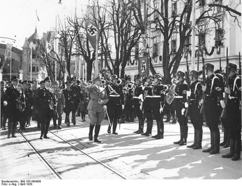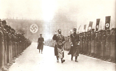 Adolf Hitler, the supreme leader of the banned SA during the acceptance of a march past in Brunswick, February 1931