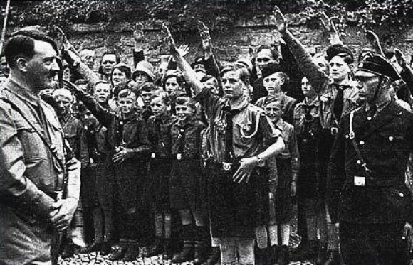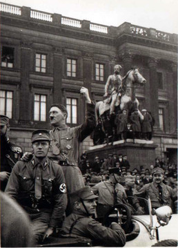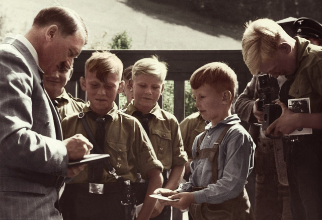 When I myself first saw this image, I thought it was photo shopped. There are way too many people in this picture for a photo shoot. Then possibly thinking about context and whatnot its probably normal.Hitler and admirers. Probably in Munich 1930