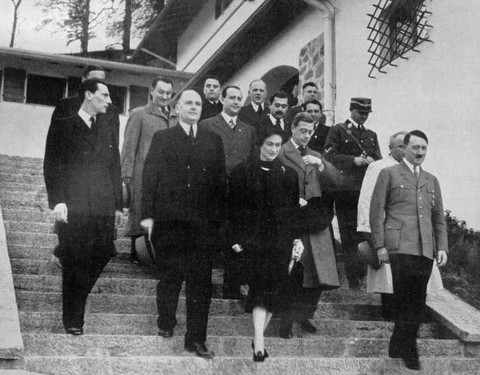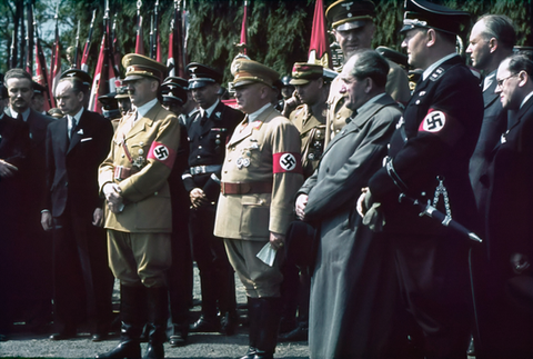Hitler & top Reich figures.Front row; GΓΆring, Hitler & Speer. Back row; Albert Bormann, Karl-Jesko von Puttkamer & Otto GΓΌnsche