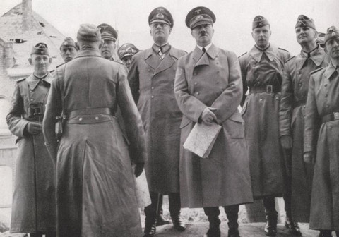 Adolf Hitler in Hitlerjugend ceremony.From left to right: Joseph Goebbels, Rudolf Hess, Baldur von Schirach, Hitler, Philipp Bouhler and Arthur Nebe