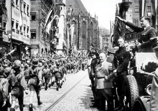 Found on open net domainAdolf Hitler greets some Hitler Youth