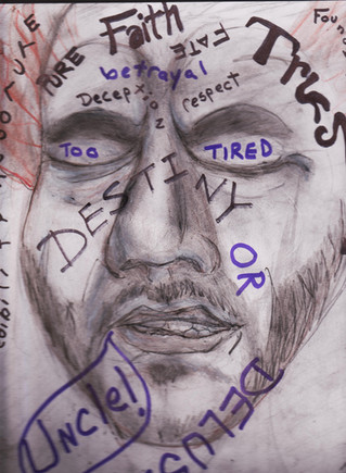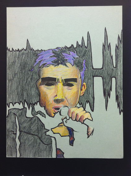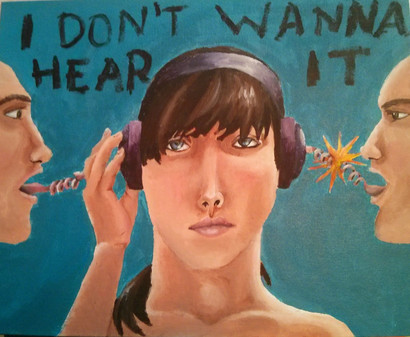 Acrylic on canvas (will get measurements later as it is currently locked in the art room over winter break). Stayed up painting until 4:00 am so I could turn it in on time. After getting an extension. The lettering took longer than I expected.Related content