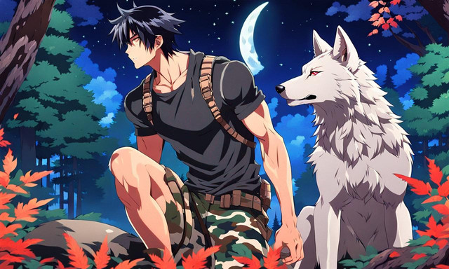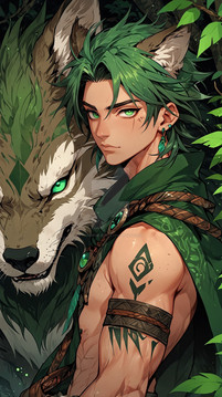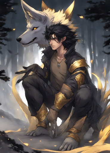 #anime #characterdesign #warrior #digitalart #drama #portrait #fantasyart #fantasycharacter #1boy #animeboy #fantasy #forest #handsomeguy #hunter #roleplaycharacter #sword #wolf #aiart #aiartwork #aiartcommunity