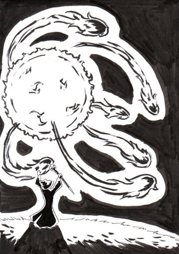 Little demons are coming up from hell.Made with Chinese ink.