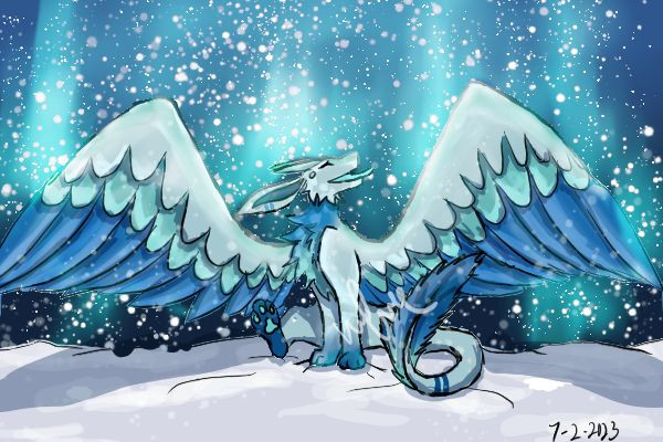 Very nice! I love how you drew the glacier and the wind blowing through his headfluff. c: I do wonder where his hind legs have gone; it doesn't look like his body is turned enough for them to be over on the other side, and if the snow isn't deep enough to cover any of his front legs it probably wouldn't engulf his back legs. Also, I think the horizon line might look better if it weren't completely straight.