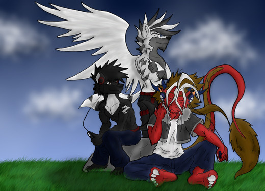 This is defiantly my favourite! They look so epicly awesome in this. Yajin looks super bad ass, like he's planning something. x3 I do love Benni's hair here has well. ^^
