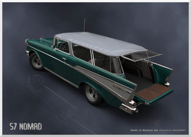 I've always liked US Station Wagons, especially the fake wood panel ones from the 60's, 70's and 80's.Here we have Alain and Eric detailed 57 Nomad from their Nationale 7 store at Renderosity.