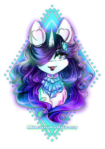 I saved it as a JPG-file at some point by accident... ;_; Artifacts everywhere...I drew this Rarity a year ago (about the time Spike gave her the heart shaped jewel) and now decided to start working on it again. Recolored, added the frames and retouched the lineart.
