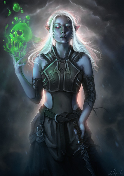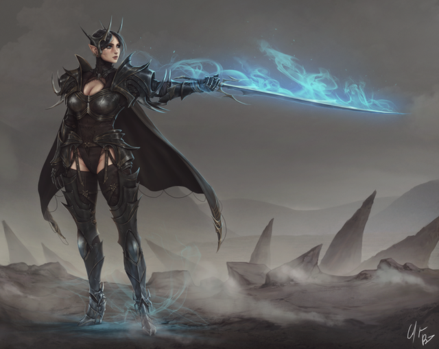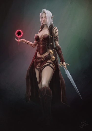 A dark elf necromancer with a giant sword.Commission available at backmanarts.deviantart.com/jou…