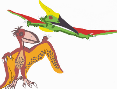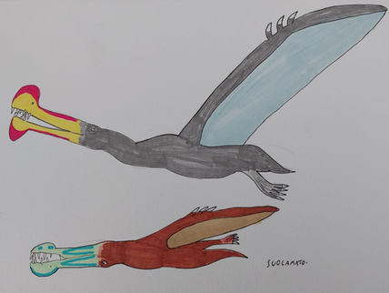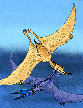 I want them to be as plausible as possible. This image, based on a Mark Witton skeletal (one that can be found here twitter.com/markwitton/status/… ) shows a male (the large one with the long, brightly colored crest) and a female (the smaller one with the short, black crest) launching.