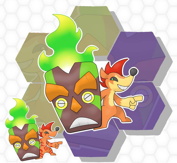 RACOONO, the raccoon pokemon (Dark/Fire)They are very excited and are always ready. At any sign of threat it prepares its tail to launch powerful bursts of fire. They can use the tail as a flashlight as well, since their habitat is usually very dark.