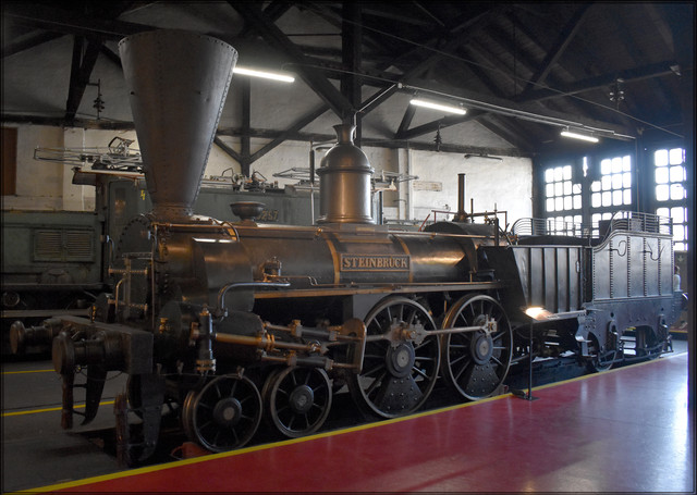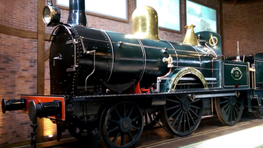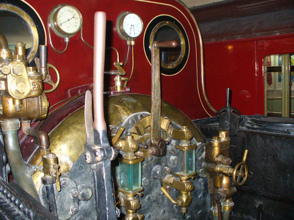 Look at that! Look at the size of the middle wheel on that thing! That's a sports train!It is, in fact, a replica of the Brunel built 7' 1/4" broad gauge locomotives of the GWR from the middle 1800s, this one being named "Firefly", and would have been part of the Firefly class 2.2.2 locomotives designed by Daniel Gooch. The NRM also has a broad gauge engine on display named "Iron Duke", which would have been one of the Iron Duke class 4.2.2 locomotives, again designed by Gooch.
