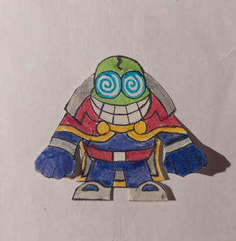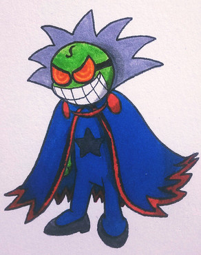 Description: No...it's not a smurf, and its not Fawful...but i did have fun drawing this guy. He claims he's from a distant kingdom but no one knows exactly WHAT kingdom that is. He confronts the main characters of my Poke+Mario world crossover (Think Mario&Luigi style gameplay with the monster collecting and exploring elements of pokemon games in the mushroom kingdom and a little comedic spin on things) selling bizarre goods that nobody wants or has ever heard of. Whether he is a possible ally or a two-timing thief who wants to make a quick coin from the daughter of Mario+Peach, we'll know more about this blue dealer in time...to those interested of course.