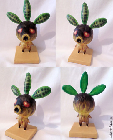 The Deku Butler's missing son is found in a cave beneath Termina's Clock Tower. A harrowing curse cast by an Imp behind a mask has left this unfortunate Scrub permanently trapped in this state.This one took me about two days to work on as well. A friend told me I should make the butler's son next. I sure showed him.