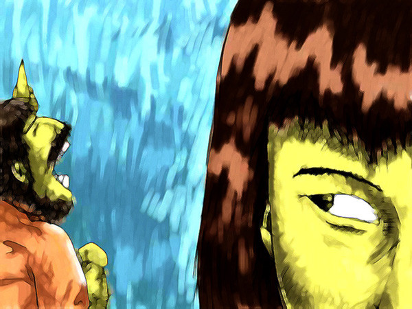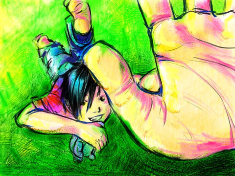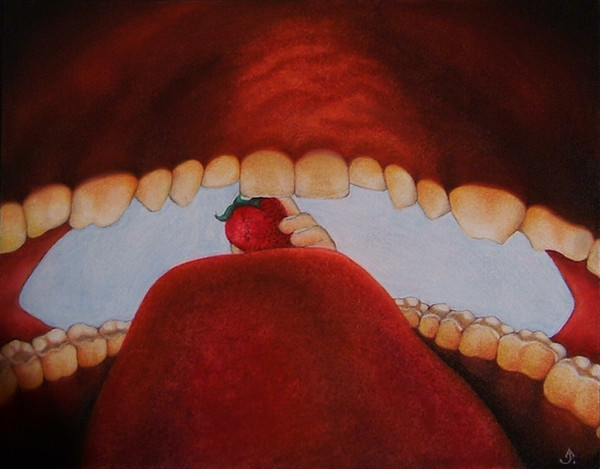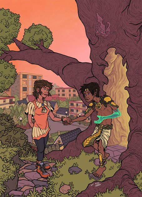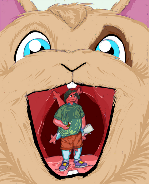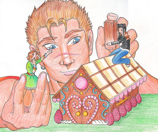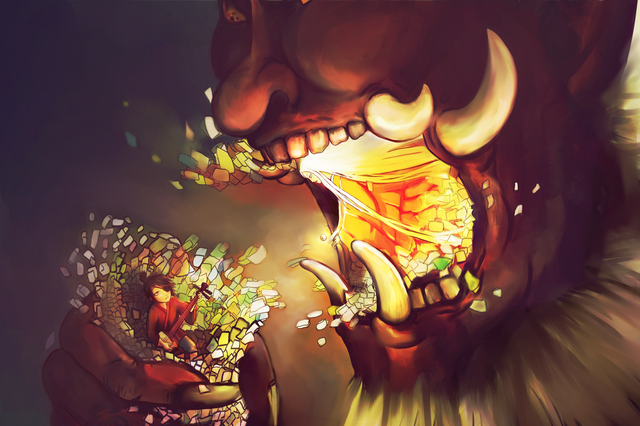 This is the fifth out of 6 paintings that made up my senior show. It was an absolute beast to complete.It's based off of the fairytale "Issun Boshi" (AKA: "The Inch High Samurai") and measures in at a whopping 46"x48". It's painted with traditional oils on Masonite.