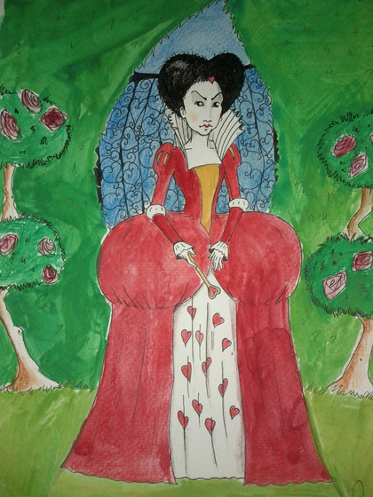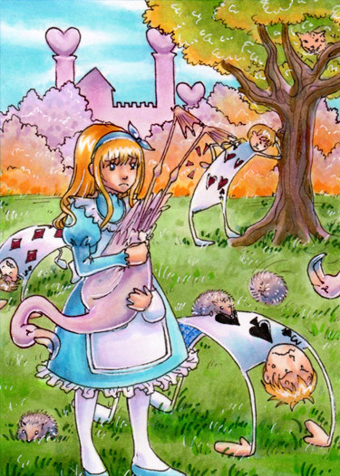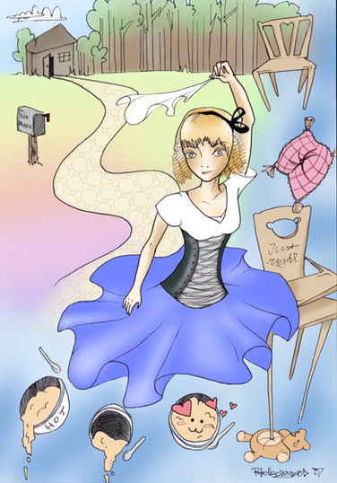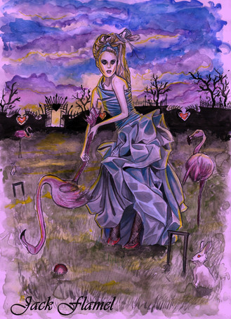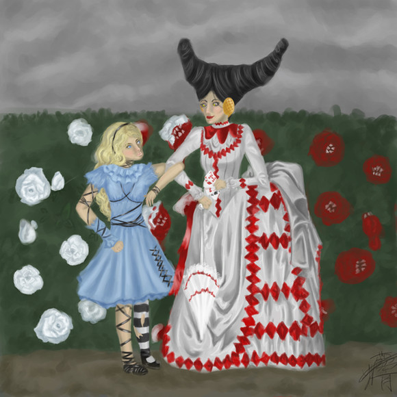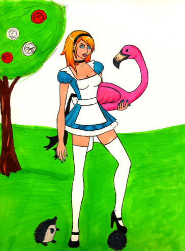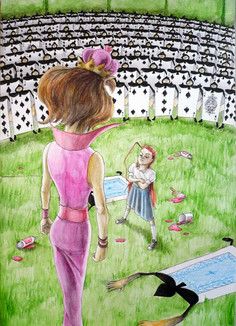 This is the fourth of 6 paintings that made up my Senior Show.It's based off the fairytale "Alice in Wonderland," measures 48" x 21 1/2," and is painted with traditional oil paints on Masonite.