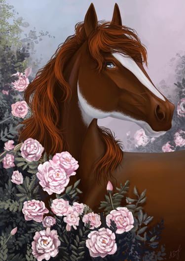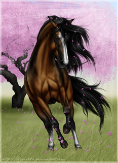 #background #bluesky #brown #digital #flowers #happy #horse #magnolia #scenery #spring #sunny #harpg #art #horseequine