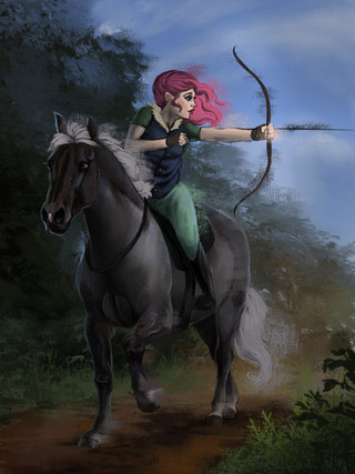 #arrow #artist #chracterdesign #conceptart #digital #fantasy #forest #horse #landscape #painting #procreate #riding #warrior #harpg #art